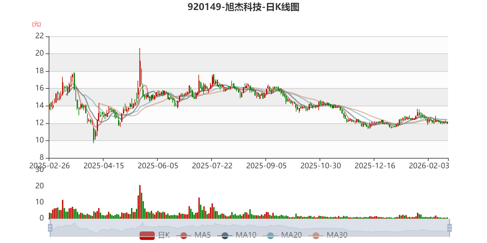 中证智能财讯旭杰科技(920149)2月26日晚间披露2025年业绩快报,公司实现营业收入4.69亿元,同比下降15.83%;归母净利润亏损4084.22万元,上年同期亏损3017.21万元;扣非净利润亏损4598.13万元,上年同期亏损3106.39万元;基本每股收益-0.54元,加权平均净资产收益率为-30.56%。以最新收盘价计算,市净率(LF)约5.88倍,市销率(TTM)约1.86倍。